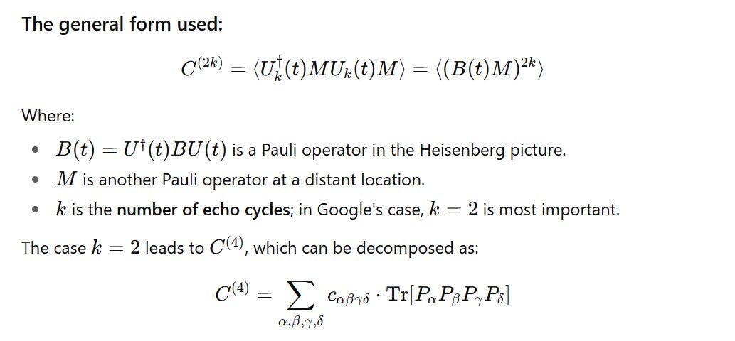 Google’s experiments show that the OTOC(2)—a higher-order correlator involving time-reversed quantum trajectories—is exponentially harder to simulate classic