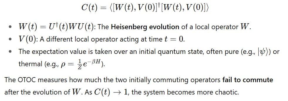 In quantum mechanics, observables don’t just evolve—they scramble. The Out-of-Time-Order Correlator (OTOC) is a measure of how chaotic, or how irreversibly scrambled, a quantum system becomes.